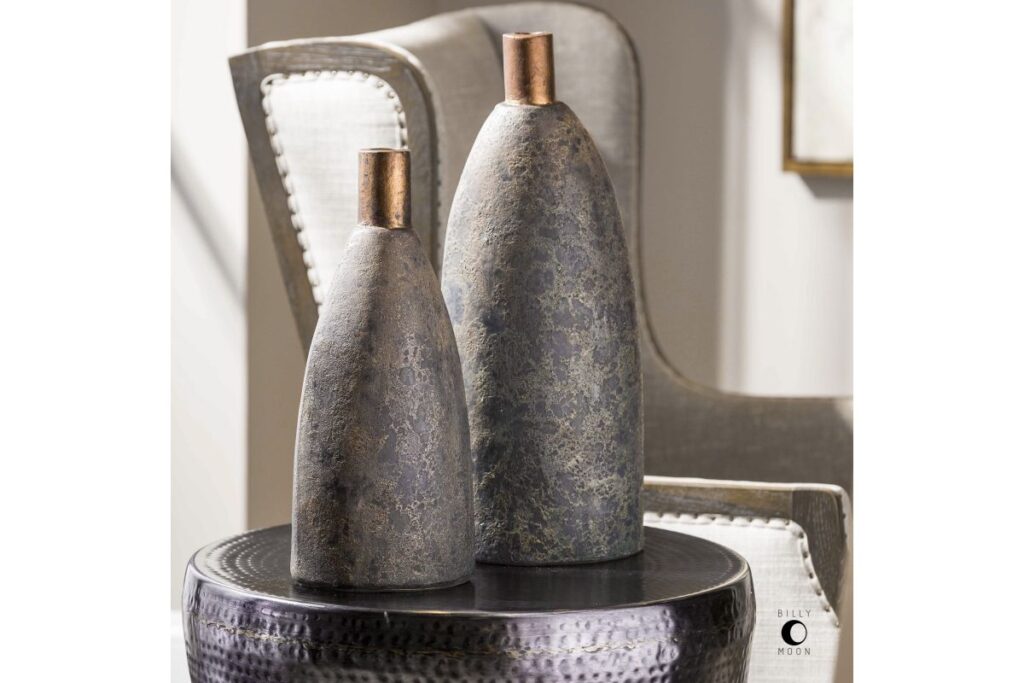 - On Shelves and Mantels: Group charcoal vases of varying heights and shapes on shelves or mantels to create a curated display. Mix and match different materials and textures for added interest.