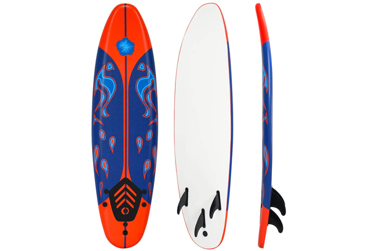 Most surfboard foam tops come with a tri-fin setup (three fins). This provides a good balance of stability and maneuverability. Some boards may have a single fin or a quad-fin setup, but these are less common. Make sure the fins are securely attached and made of a durable material. Softer fins are often preferred on soft-top boards to enhance the forgiving nature of the board.