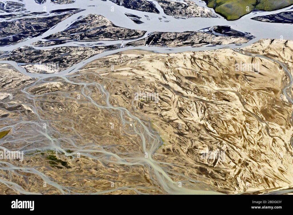 The Tungnaá‘s journey begins beneath the vast expanse of the Vatnajökull glacier. Meltwater from the glacier feeds numerous tributaries that converge to form the main river. As the Tungnaá flows southward, it carves its way through the rugged terrain of the Icelandic highlands, characterized by volcanic landscapes, lava fields, and expansive sandur plains. The river’s course is dynamic, constantly shifting due to glacial activity and sediment deposition.